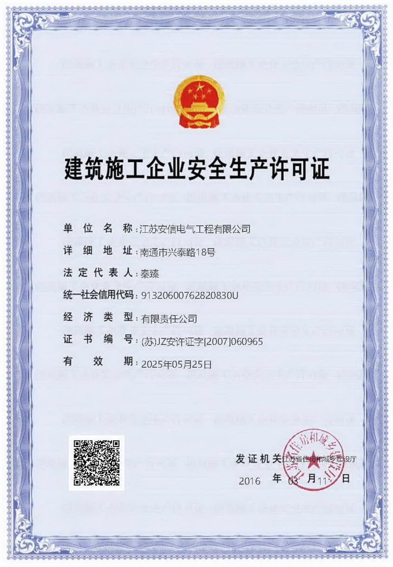 在創(chuàng)業(yè)之初,公司就堅(jiān)持高起點(diǎn)的戰(zhàn)略思路,廣納賢才,集聚行業(yè)精英,創(chuàng)新發(fā)展,做優(yōu)企業(yè)品牌。現(xiàn)已取得:承裝二級(jí)、承修二級(jí)、承試二級(jí),電力工程施工總承包二級(jí),輸變電工程專業(yè)承包二級(jí),建筑工程施工總承包二級(jí),建筑機(jī)電安裝專業(yè)承包二級(jí),地基基礎(chǔ)專業(yè)承包二級(jí)資質(zhì)證書,并通過了質(zhì)量、環(huán)境、職業(yè)健康和安全管理體系認(rèn)證,確保各項(xiàng)工作有序管控。